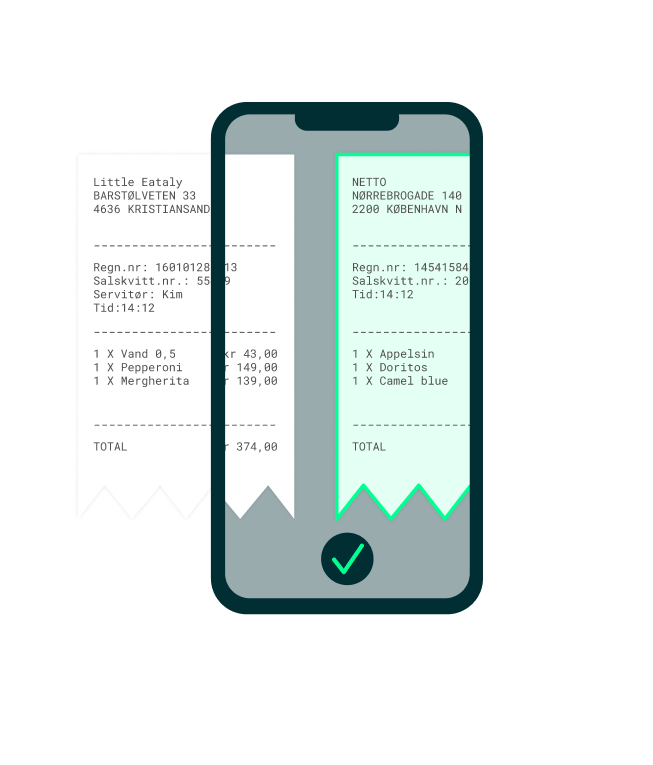 - Genkendes dato, beløb, og valuta automatisk på kvitteringerne